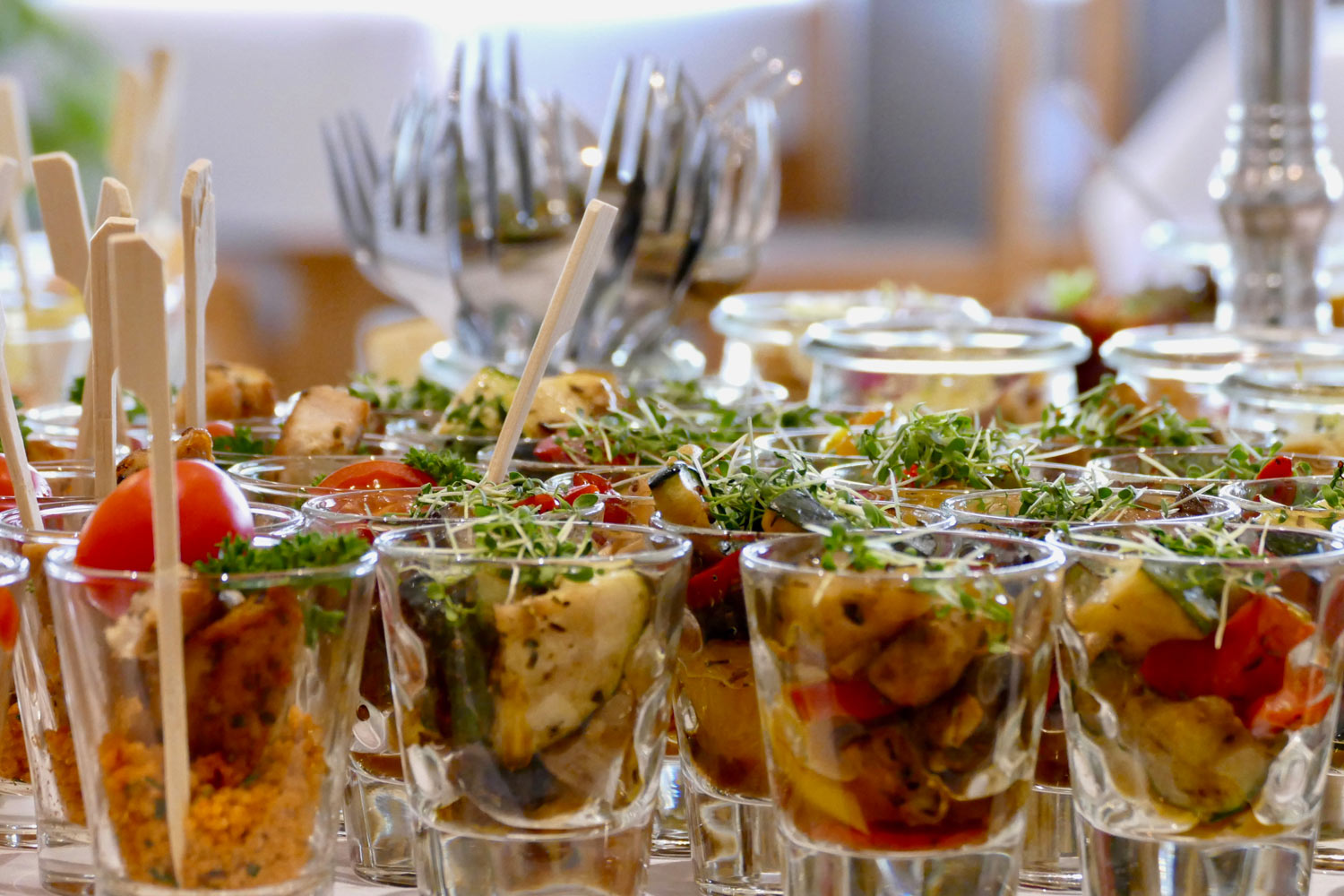 Gemeinsam mit Ihnen entwickeln wir das passende Konzept für Ihre Anforderung und /oder unterstützen kulinarisch und visuell Ihre Botschaft. Unsere langjährige Erfahrung in Küche, Service und bei der Umsetzung vergleichbarer Veranstaltungen garantiert Ihnen den Erfolg für Ihre Veranstaltung.
